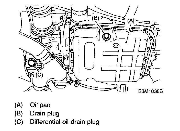 NOTE: Tighten ATF drain plug after draining ATF.