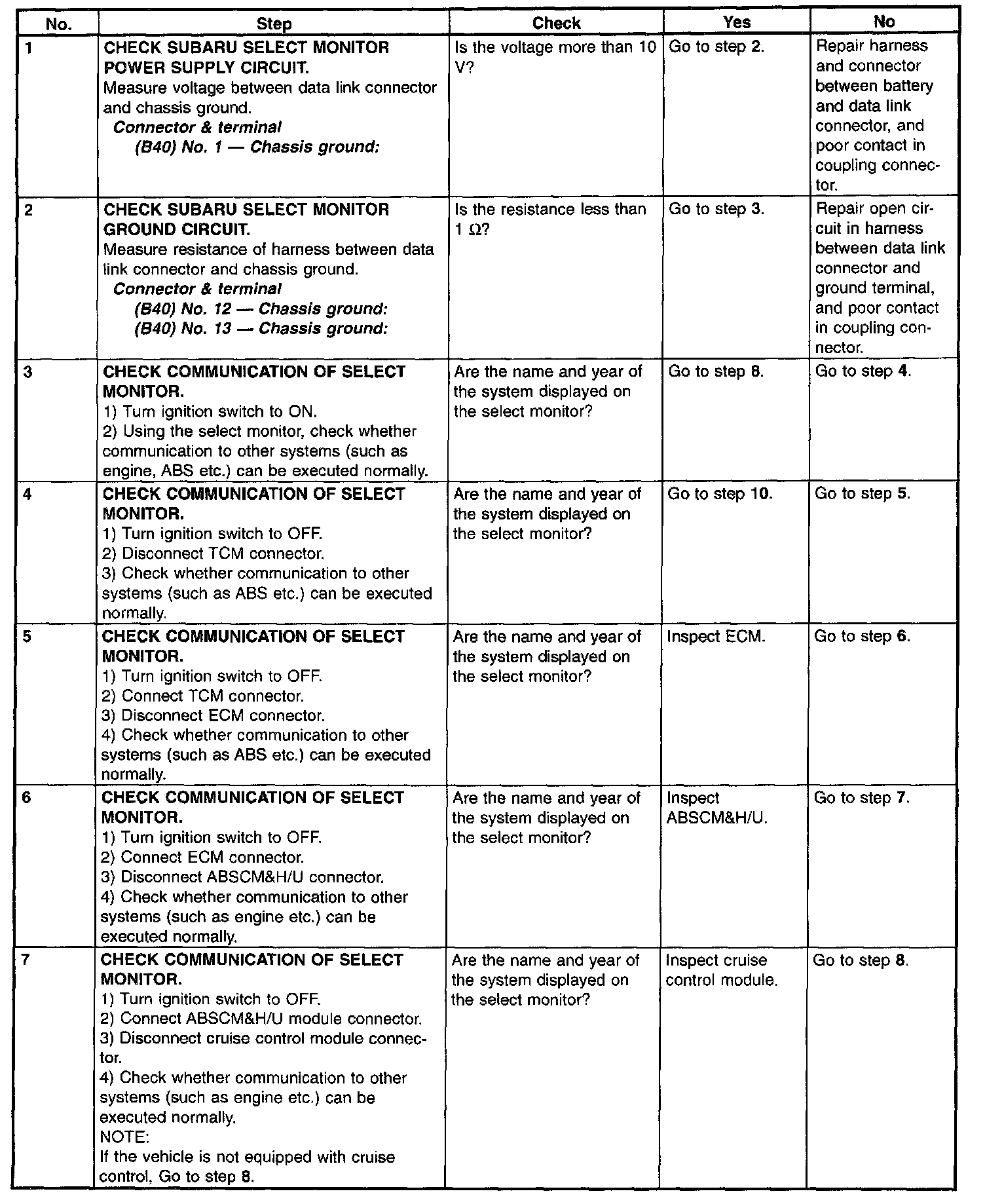 Diagnostic Procedure For Select Monitor Communication