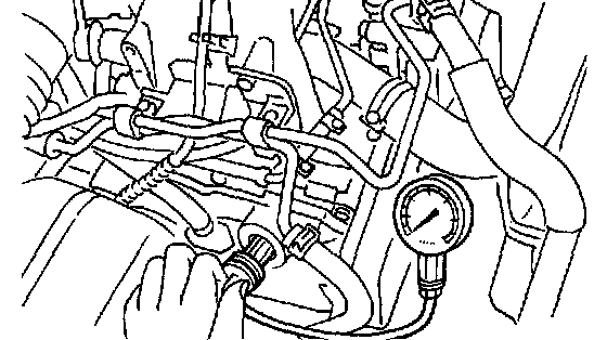 8) Crank the engine by means of the starter motor, and read the maximum value on the gauge when the pointer is steady.