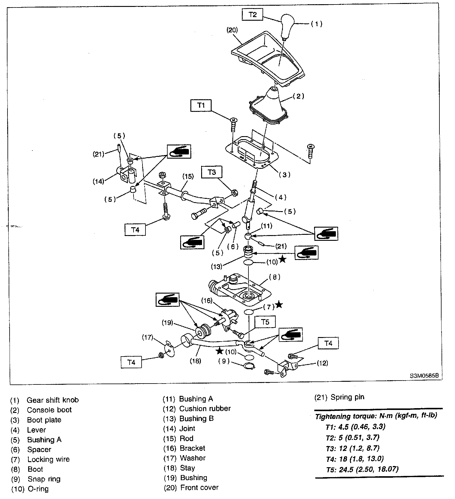 5-spd M/T, Transmission Control System (Gear Shift Lever):