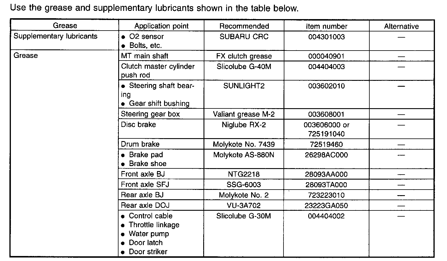 To insure the best performance, always use the specified oil, gasoline, adhesive, sealant, etc. or that of equivalent quality.