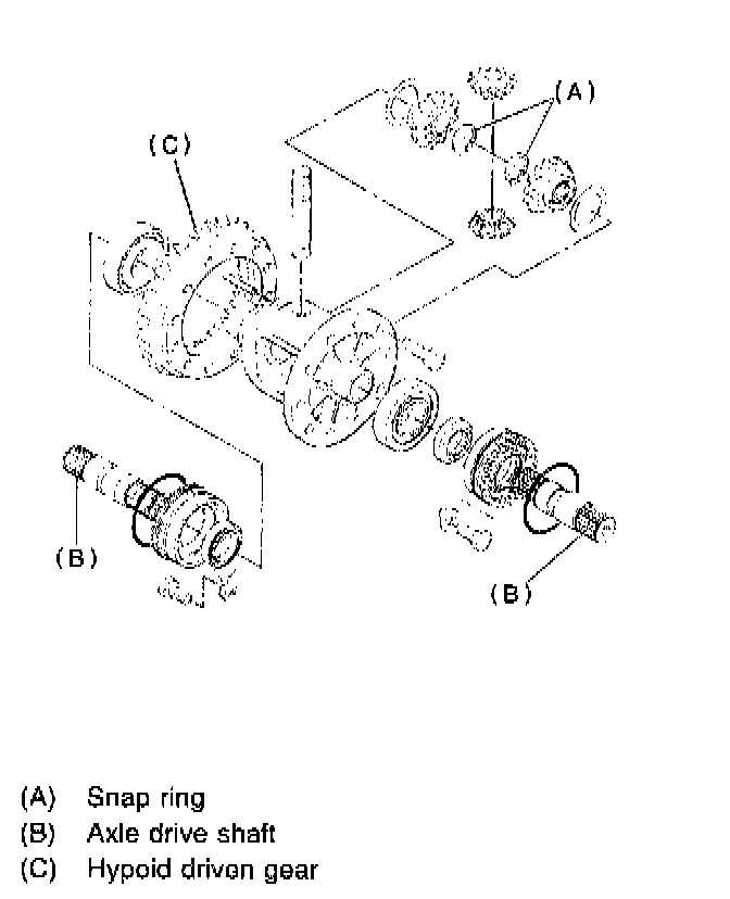 1. Remove right and left snap rings from differential, and then remove two axle drive shafts.