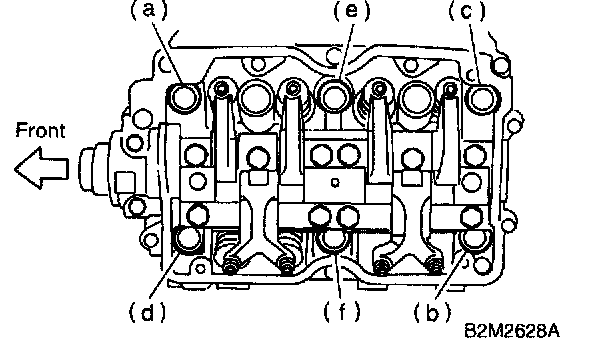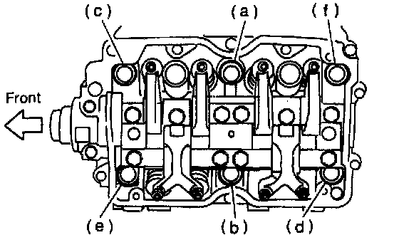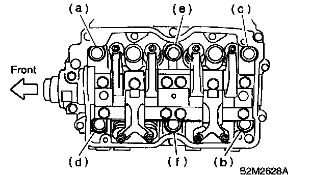 CAUTION: Leave bolts (a) and (b) engaged by three or four threads to prevent cylinder head from falling.