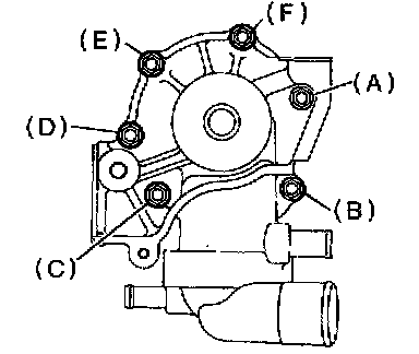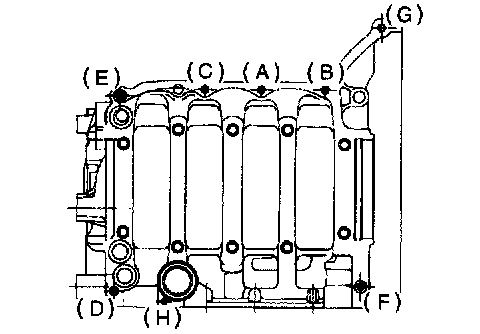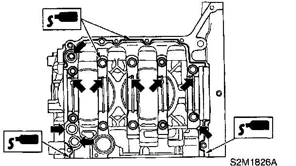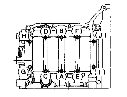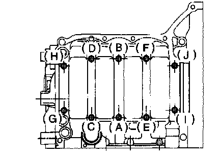 4) Tighten 10 mm cylinder block connecting bolts in alphabetical sequence.