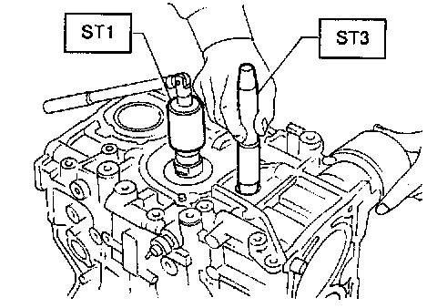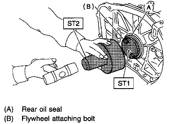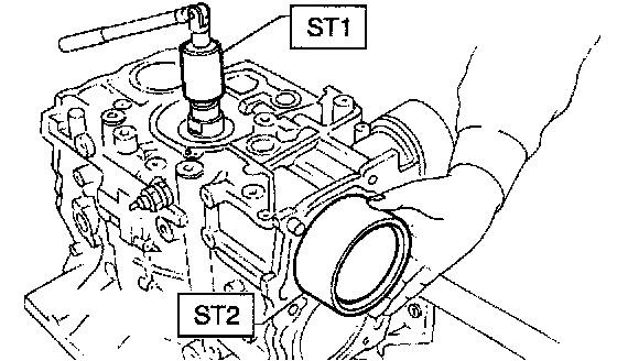 6) Install rear oil seal using ST1 and ST2.