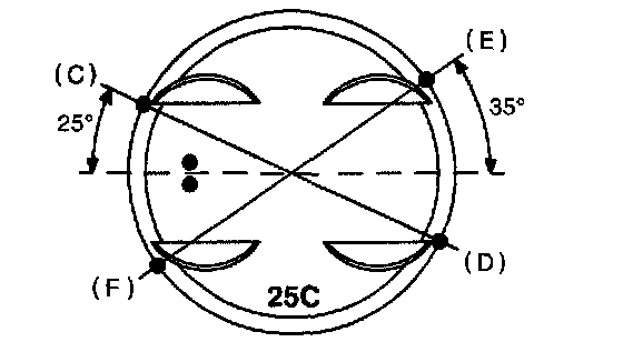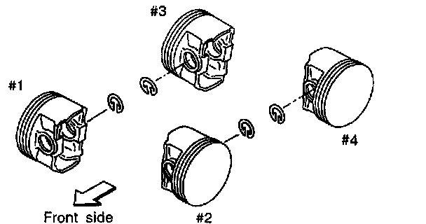 CAUTION: Piston front mark faces towards the front of the engine.