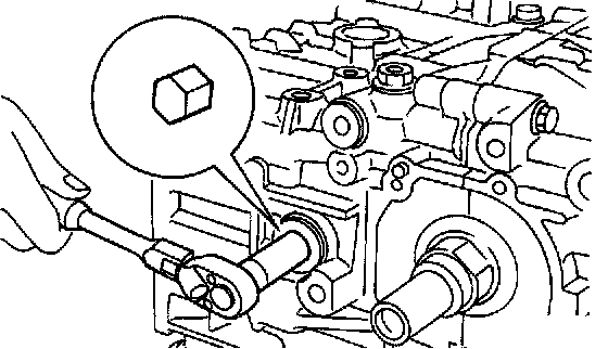 29) Remove service hole cover and service hole plugs using hexagon wrench [14 mm (0.55 inch)].
