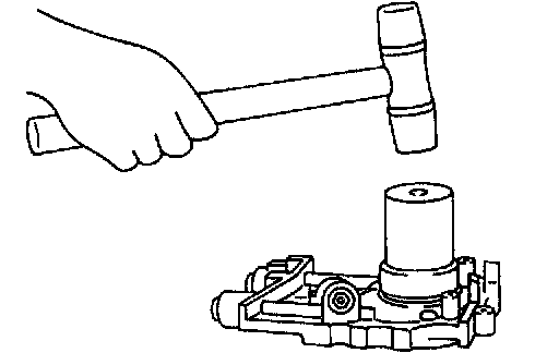 11) While tapping cylinder head with a plastic hammer, separate it from cylinder block.