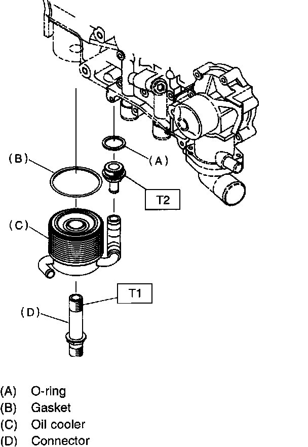 21) Remove oil cooler. (AT vehicles only)