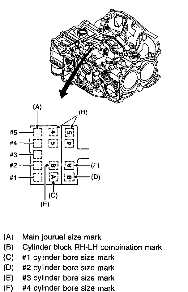 a) The cylinder bore size is stamped on the cylinder block's front upper surface.