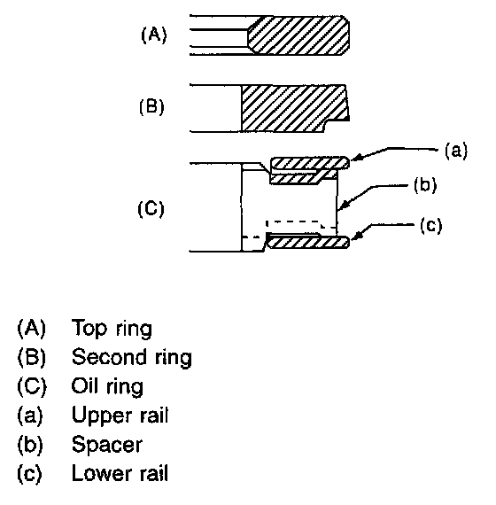 ^ The oil ring is a combined ring consisting of two rails and a spacer in between. When installing, be careful to assemble correctly.