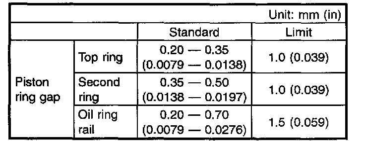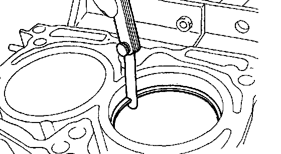 b) Squarely place piston ring and oil ring in cylinder, and measure the piston ring gap with a thickness gauge.