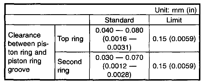 CAUTION: Before measuring the clearance, clean the piston ring groove and piston ring.