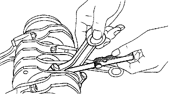 f) Measure the oil clearance on each crankshaft bearing by means of plastigauge, If the measurement is not within the specification, replace defective bearing with an undersize one, and replace or recondition crankshaft as necessary.