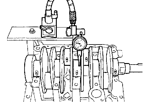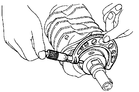 b) Measure the crankshaft bend, and correct or replace if it exceeds the limit.