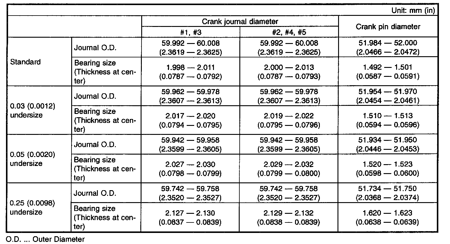 Limit of cylinder enlarging (boring): 0.5 mm (0.020 inch)
