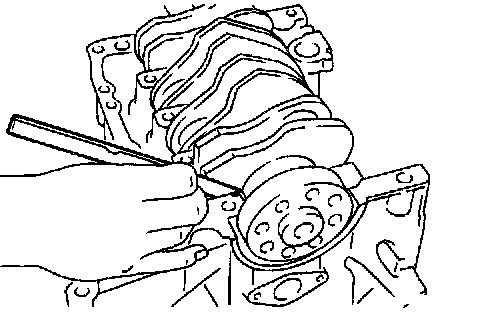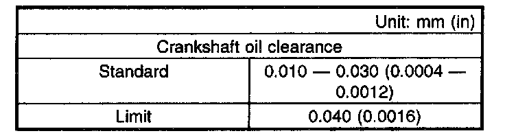 d) Measure the thrust clearance of crankshaft at center bearing. If the clearance exceeds the limit, replace bearing.