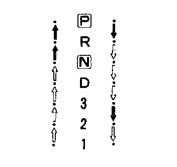 3) Check that select lever does not move from "P" to "R" without pushing the button.