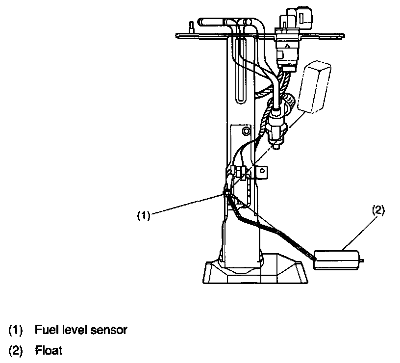 The fuel level sensor forms part of the fuel pump and located in the fuel tank. The sensor outputs an electric resistance signal that varies with movement of its float to indicate the level of the fuel remaining in the tank.