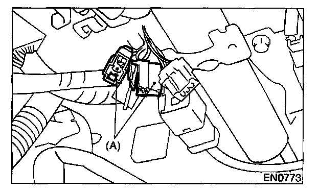 4. Connect the test mode connector (A) at the lower portion of instrument panel (on the driver's side), to the side of the center console box.