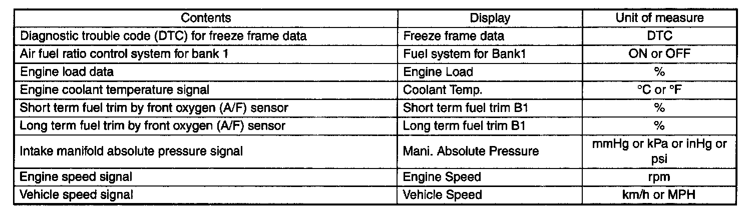 READ FREEZE FRAME DATA FOR ENGINE. (OBD MODE)