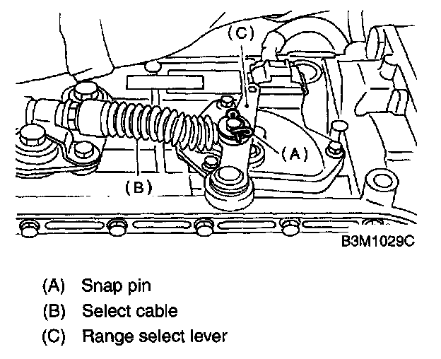 10. Remove the snap pin from range select lever.