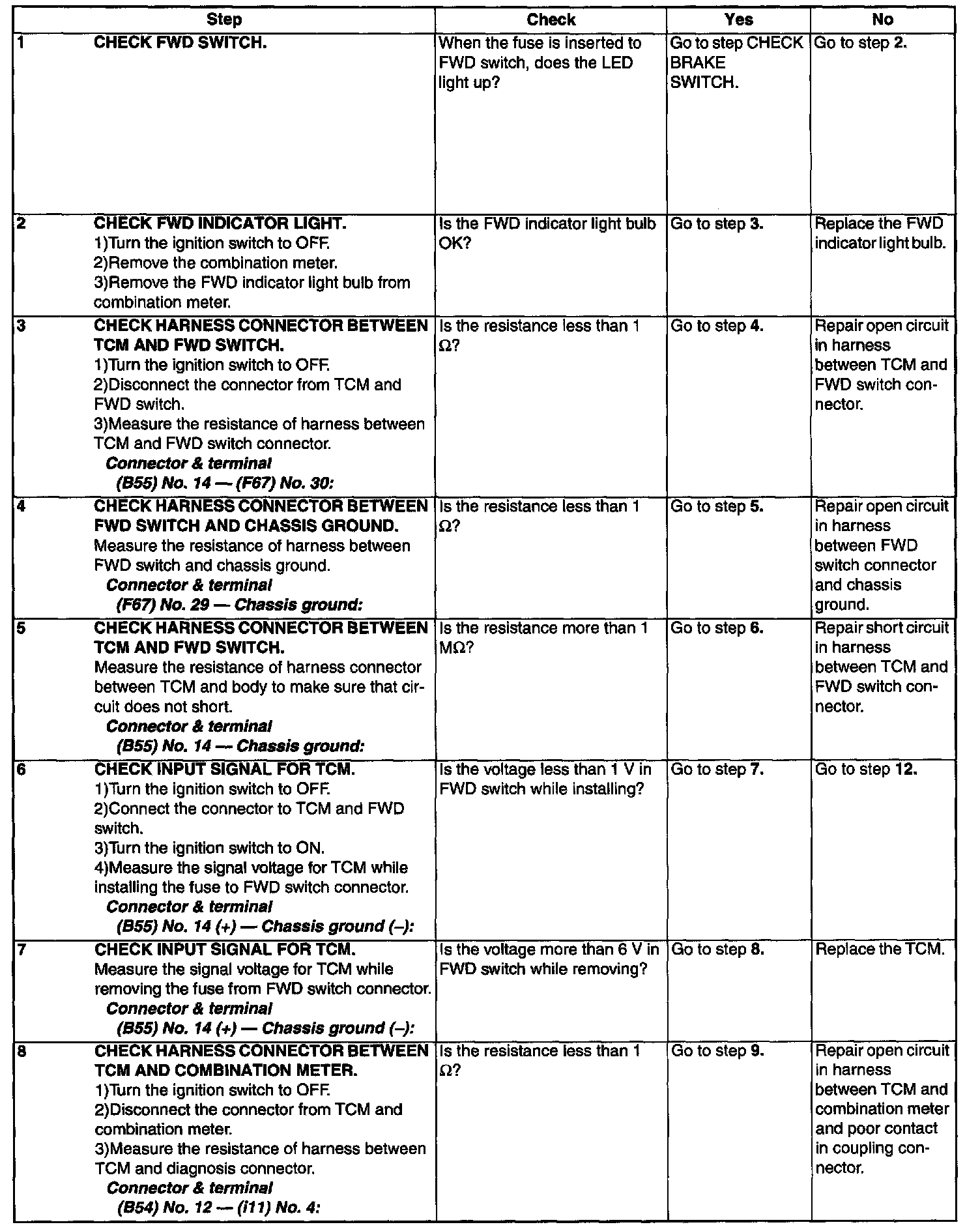 B: CHECK FWD SWITCH.