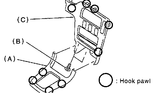 3. Remove two screws (B) and then remove center panel (C) while disconnecting connector.