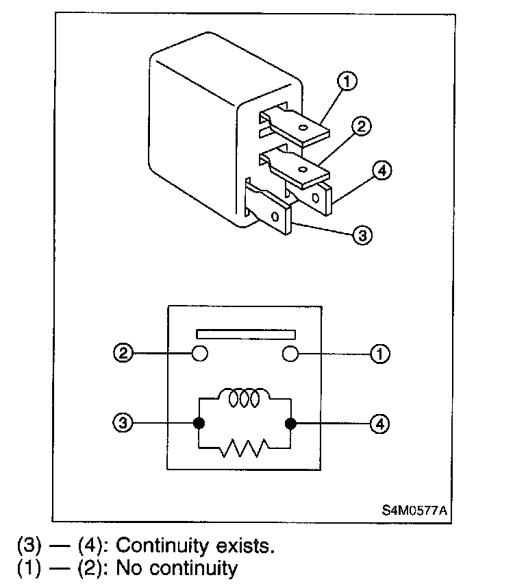While applying battery voltage to the cable between (3) and (4), check continuity between (1) and (2).
