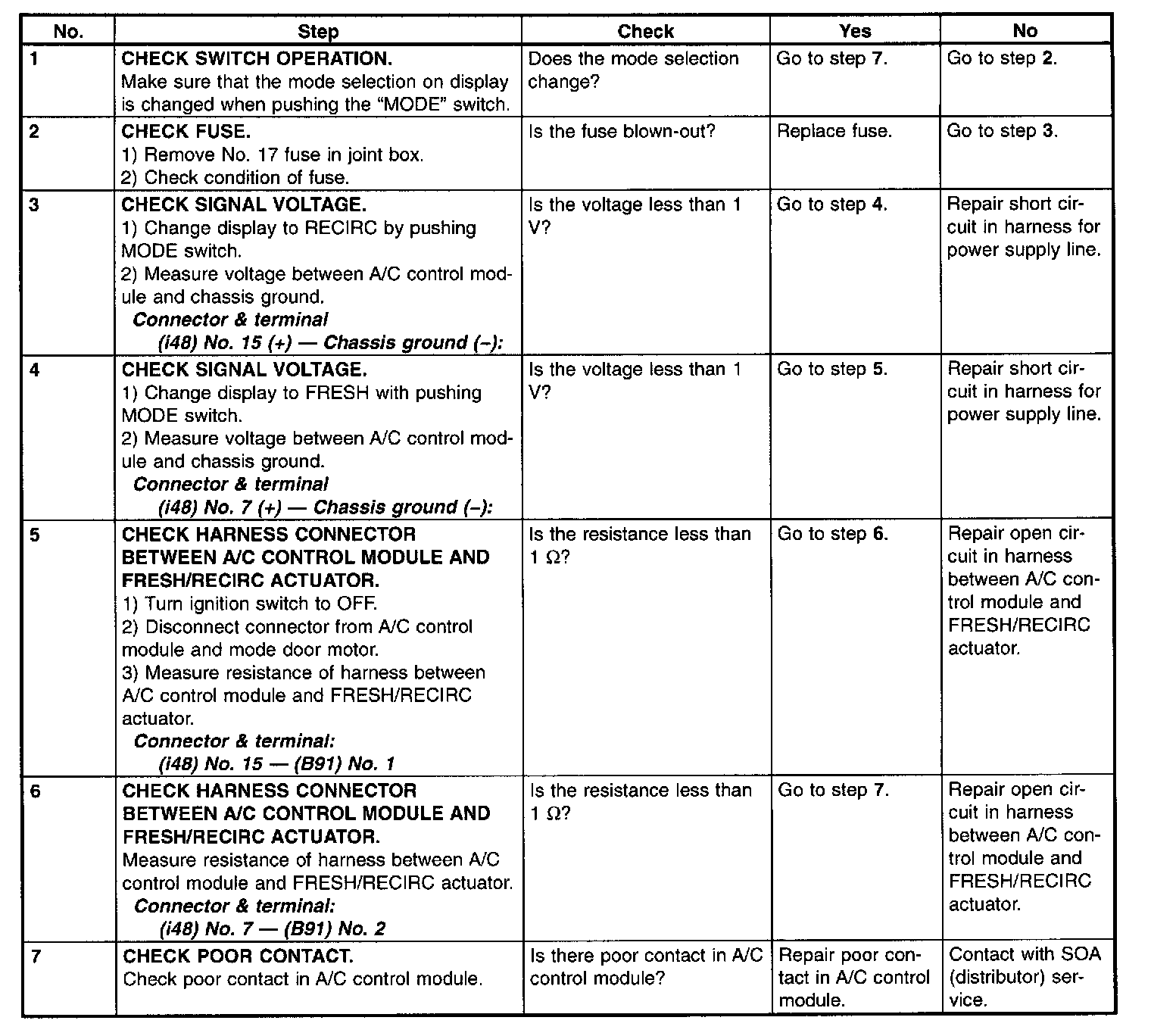 FRESH/RECIRC mode door is not changed.