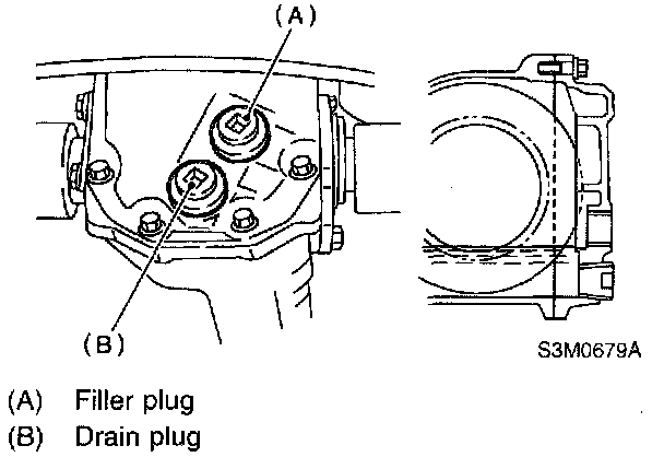 2. Take out filler plug, and replace gear oil if it is contaminated or deteriorated.