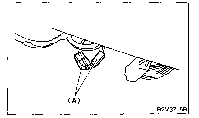 4. Connect test mode connector (A) at the lower portion of instrument panel (on the driver's side), to the side of the center console box.