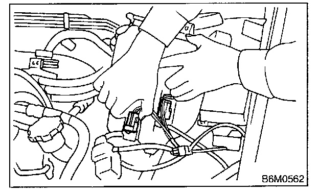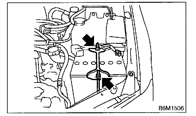 1. Disconnect battery cables and then remove battery and battery carrier.
