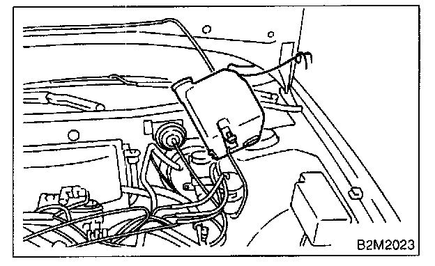 3. Remove the two bolts which hold the washer tank, then take the tank away from the working area.