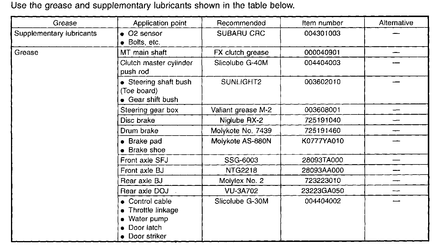 To insure the best performance, always use the specified oil, gasoline, adhesive, sealant, etc. or a substitute of equivalent quality.