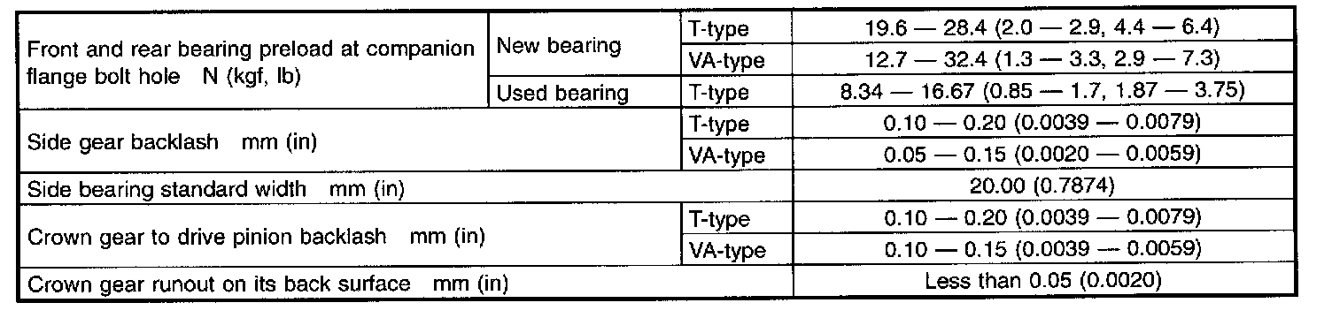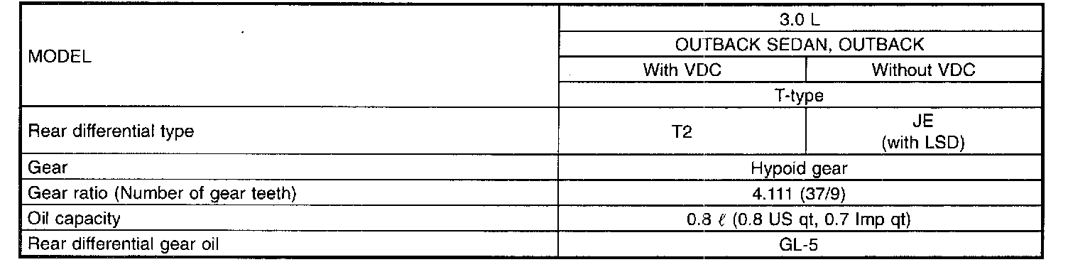When replacing rear differential assembly, select the correct one according to the table.