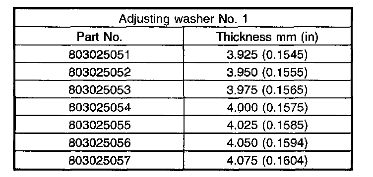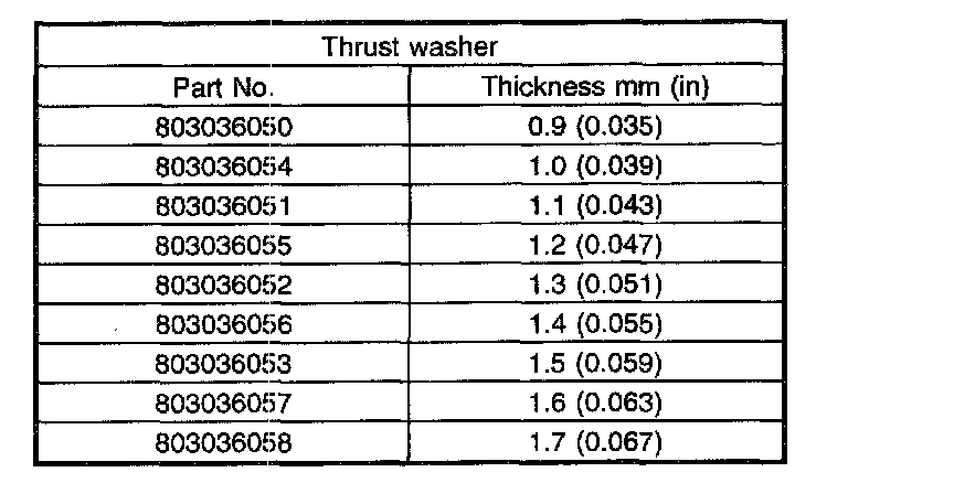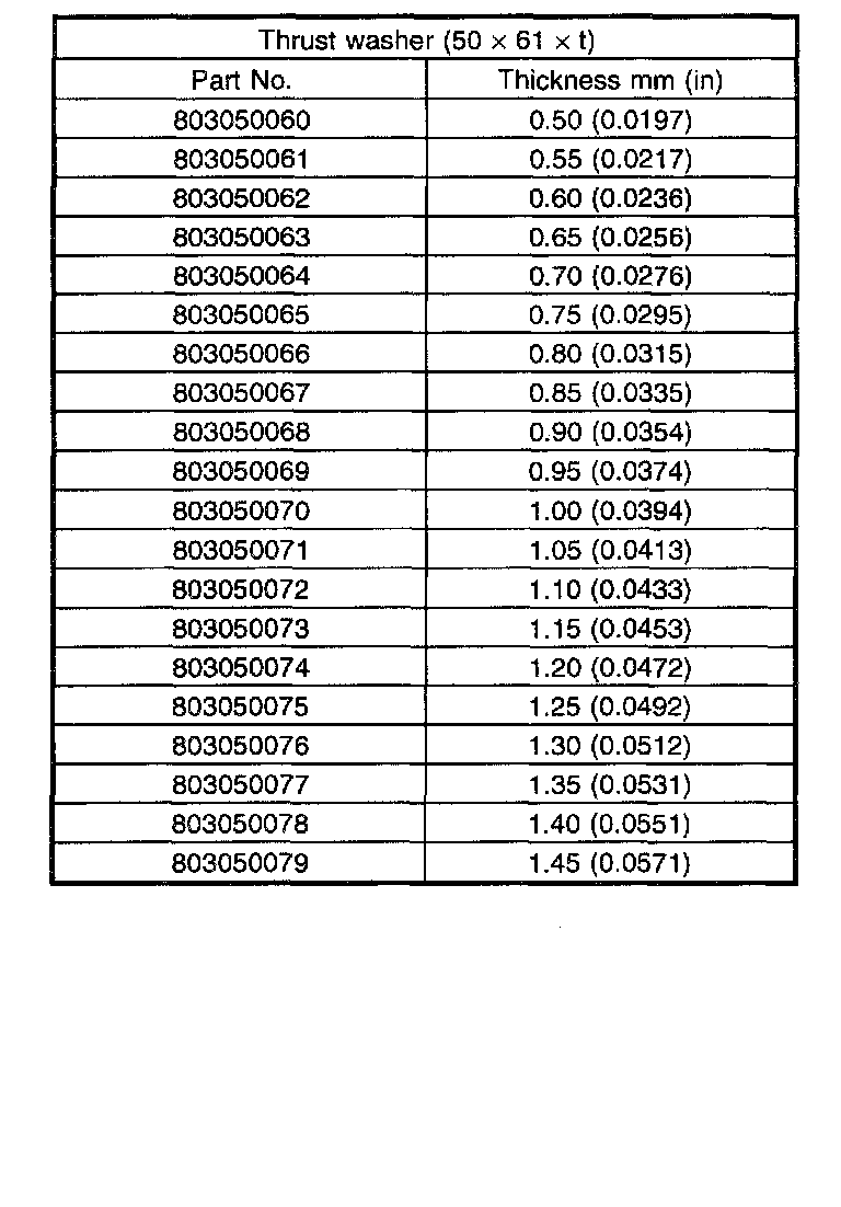 Thrust washer (50 X 61 X t) to taper roller bearing table outer race side clearance