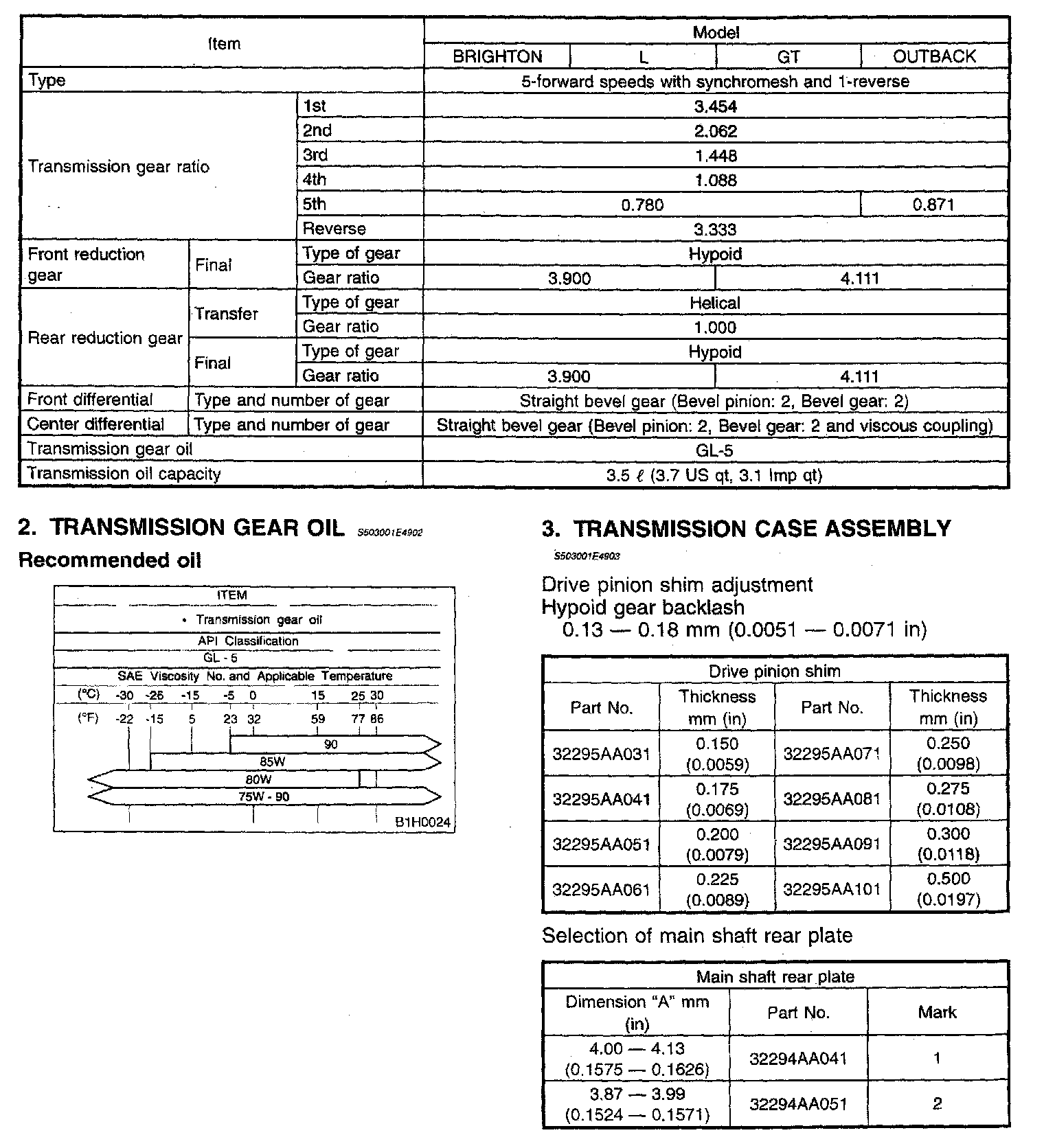 5-spd M/T, Transmission Service/Overhaul Data: