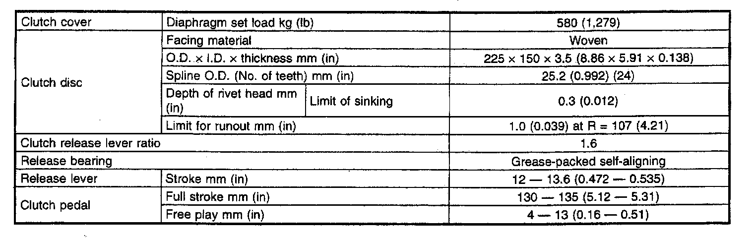 5-spd M/T, Transmission Clutch Service Data: