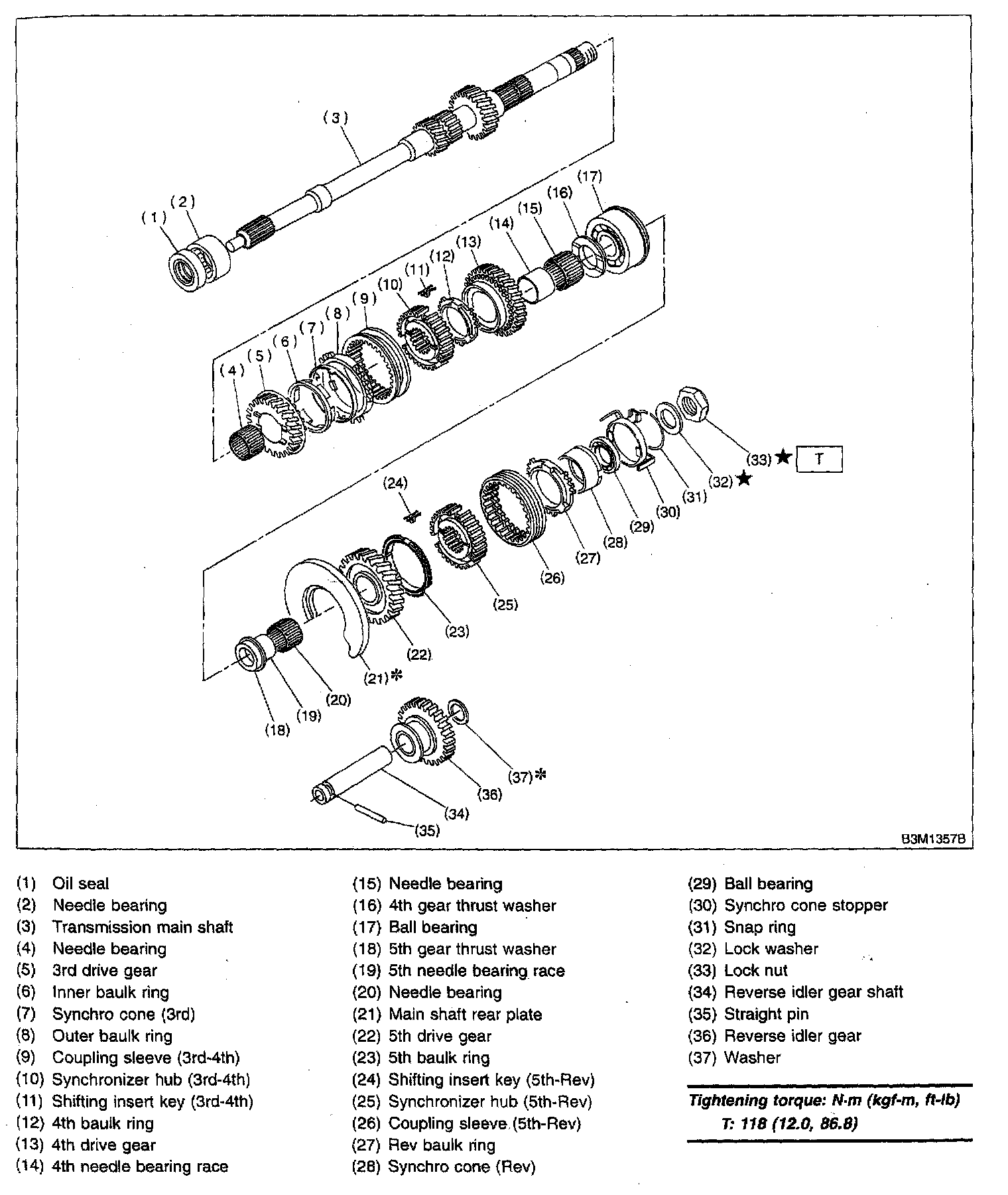 5-spd M/T, Transmission Control System (Gear Shift Lever):