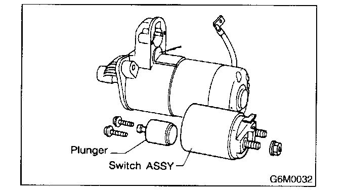 2. Remove bolts which hold switch assembly, and remove switch assembly, plunger and plunger spring from starter as a unit.