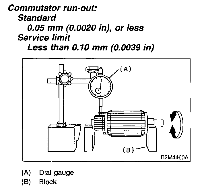 Check the commutator run-out and replace if it exceeds the limit.