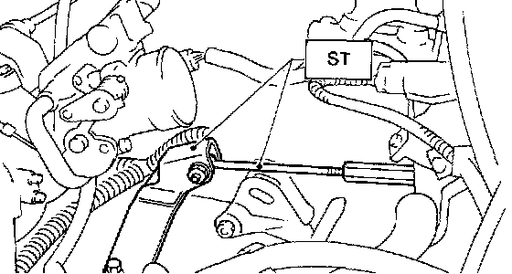 NOTE: Be careful not to drop the ST into the torque converter clutch case when removing ST.