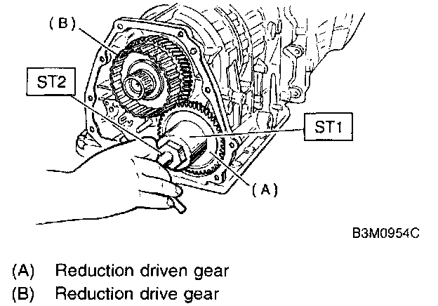 3. Remove snap rings from reduction driven gear. (Legacy 2.5 L US model and 3.0 L model)