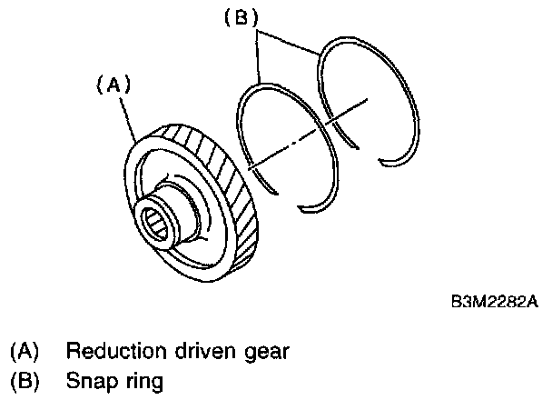 1. Install snap rings to reduction driven gear. (Legacy 2.5 L US model and 3.0 L model)