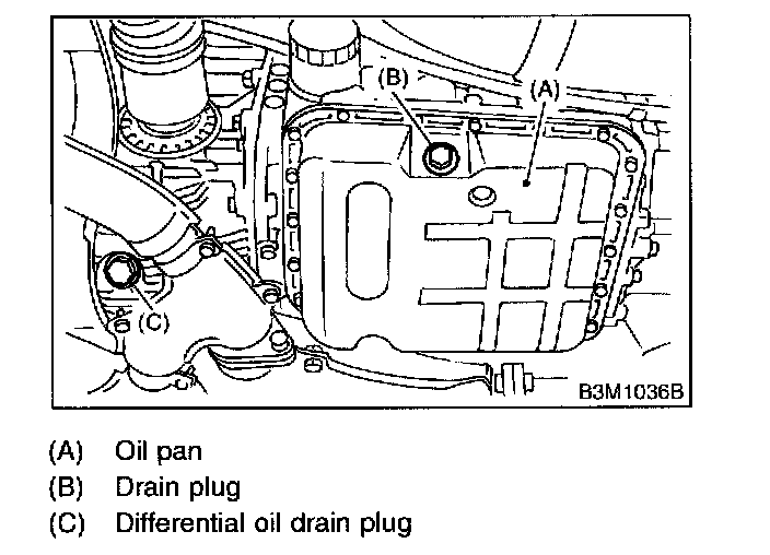 NOTE: Tighten ATF drain plug after draining ATF.