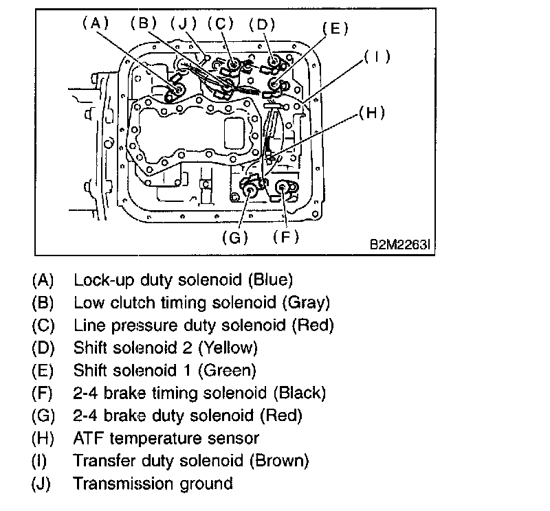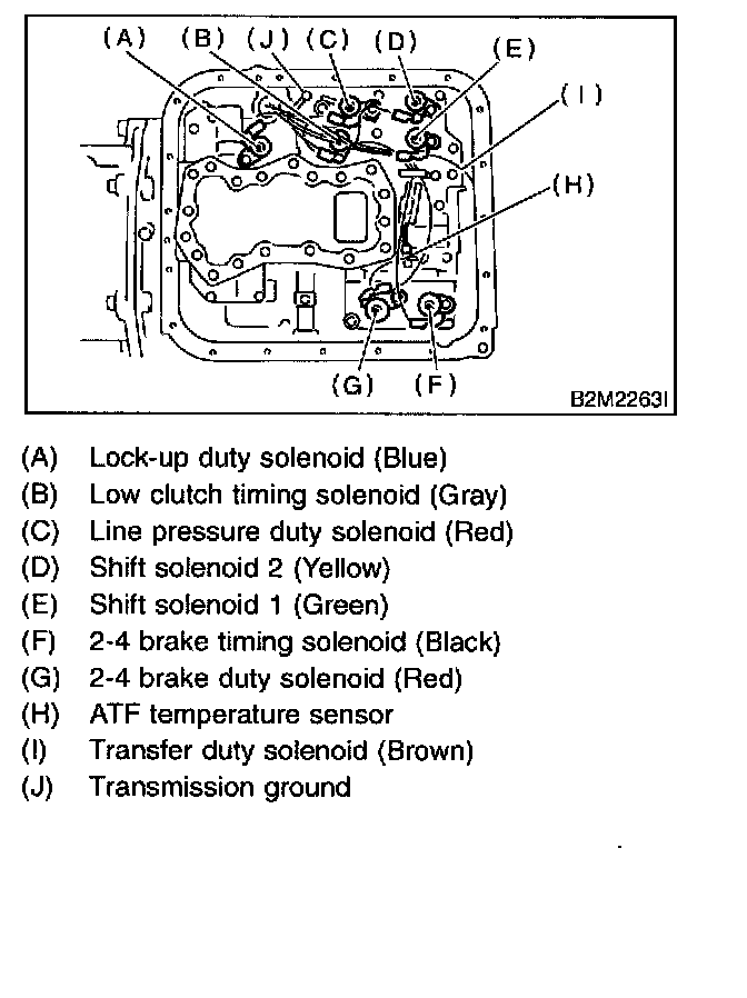19. Disconnect duty solenoids and ATF temperature sensor connectors. Remove connectors from clip and disconnect connectors.