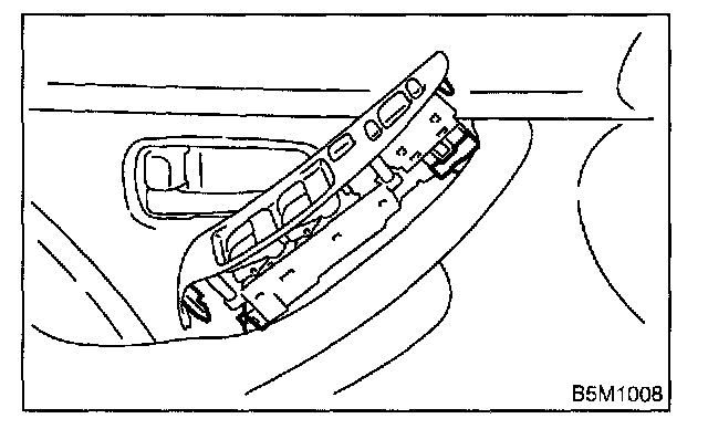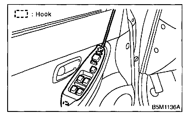 Remove two hooks of switch panel to remove power window sub-switch and disconnect electrical connector.