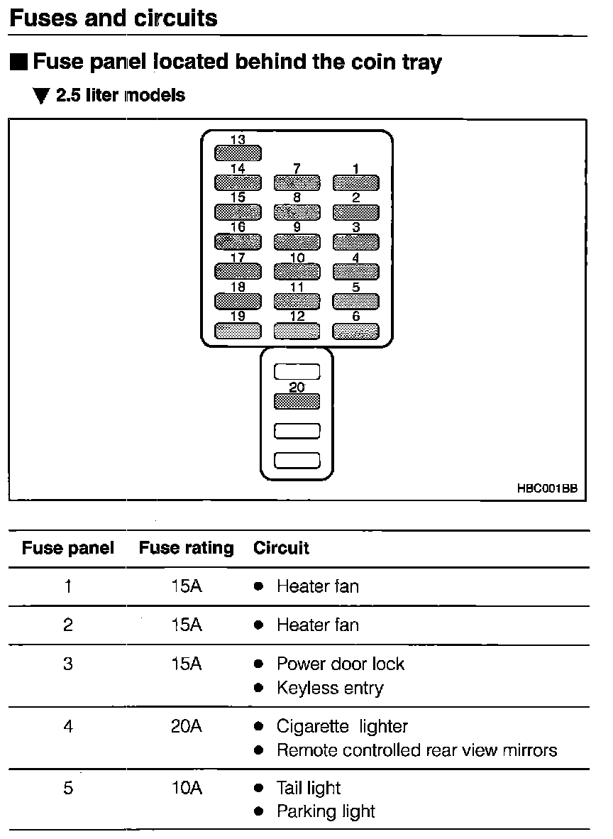 Fuse Panel Located Behind Coin Tray:
