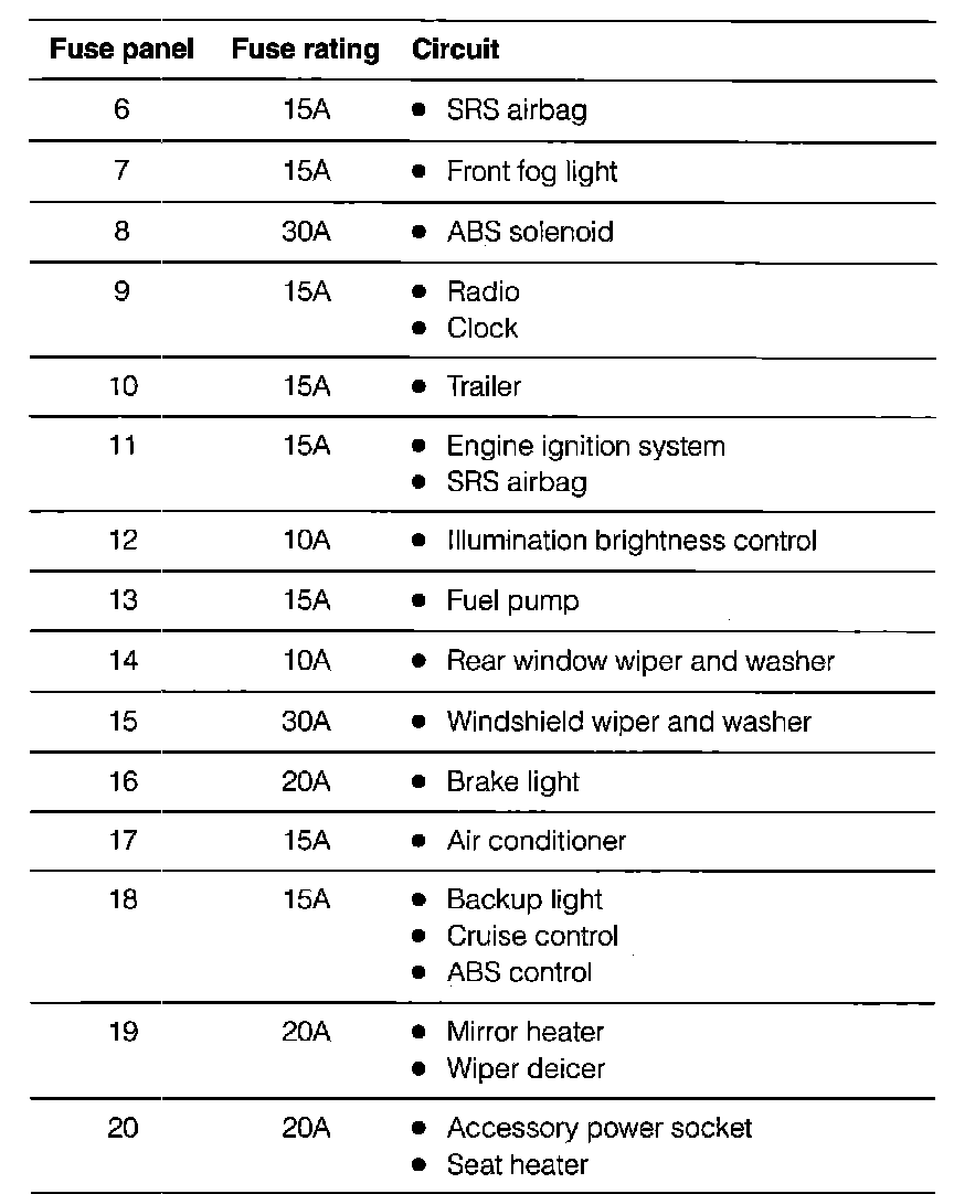 Fuse Panel Details